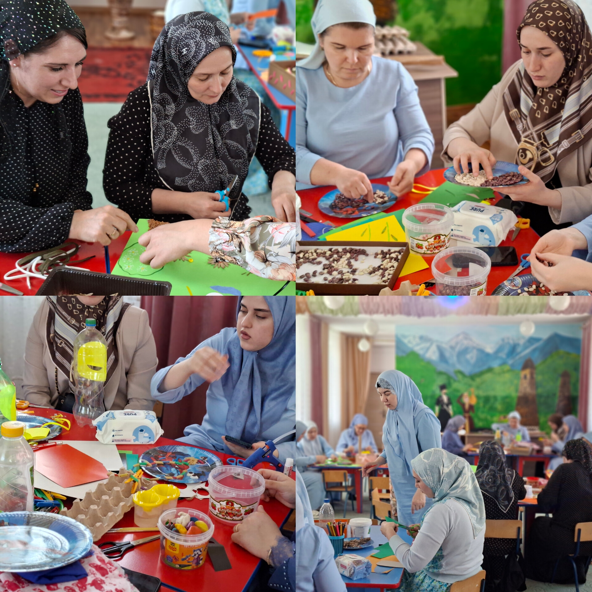 В рамках проекта «Просвещение родителей» старший воспитатель Матаева М.К. и педагог-психолог Мусаитова З.Э. провели практическое занятие, на котором взрослые своими руками создали развивающие игры и пособия.