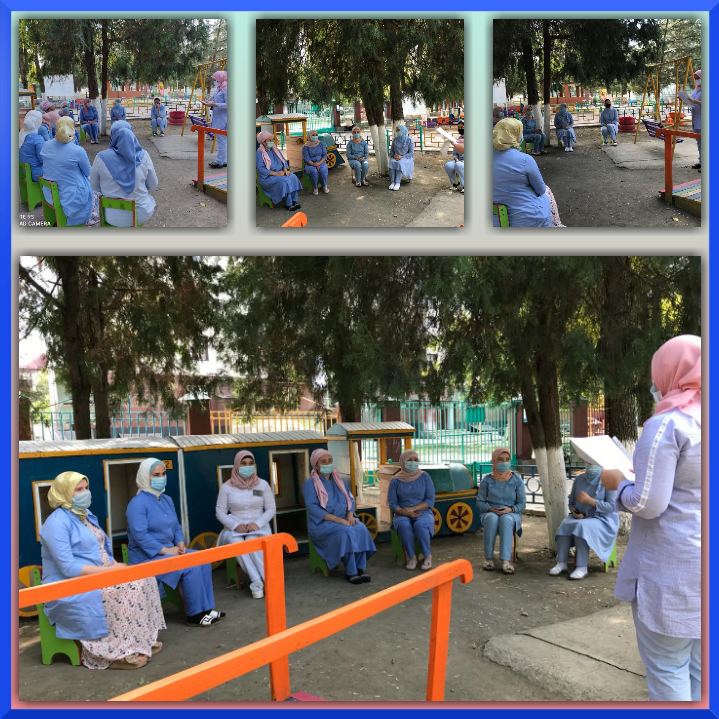 17.09.2020Инструктор по физической культуре Иразова Рамази Х. провела с воспитателями детского сада "Солнышко" консультацию на тему "Взаимодействие инструктора с педагогами ДОУ по вопросам физического воспитания, сохранения и укрепления здоровья детей". Тема является очень актуальной в данное время