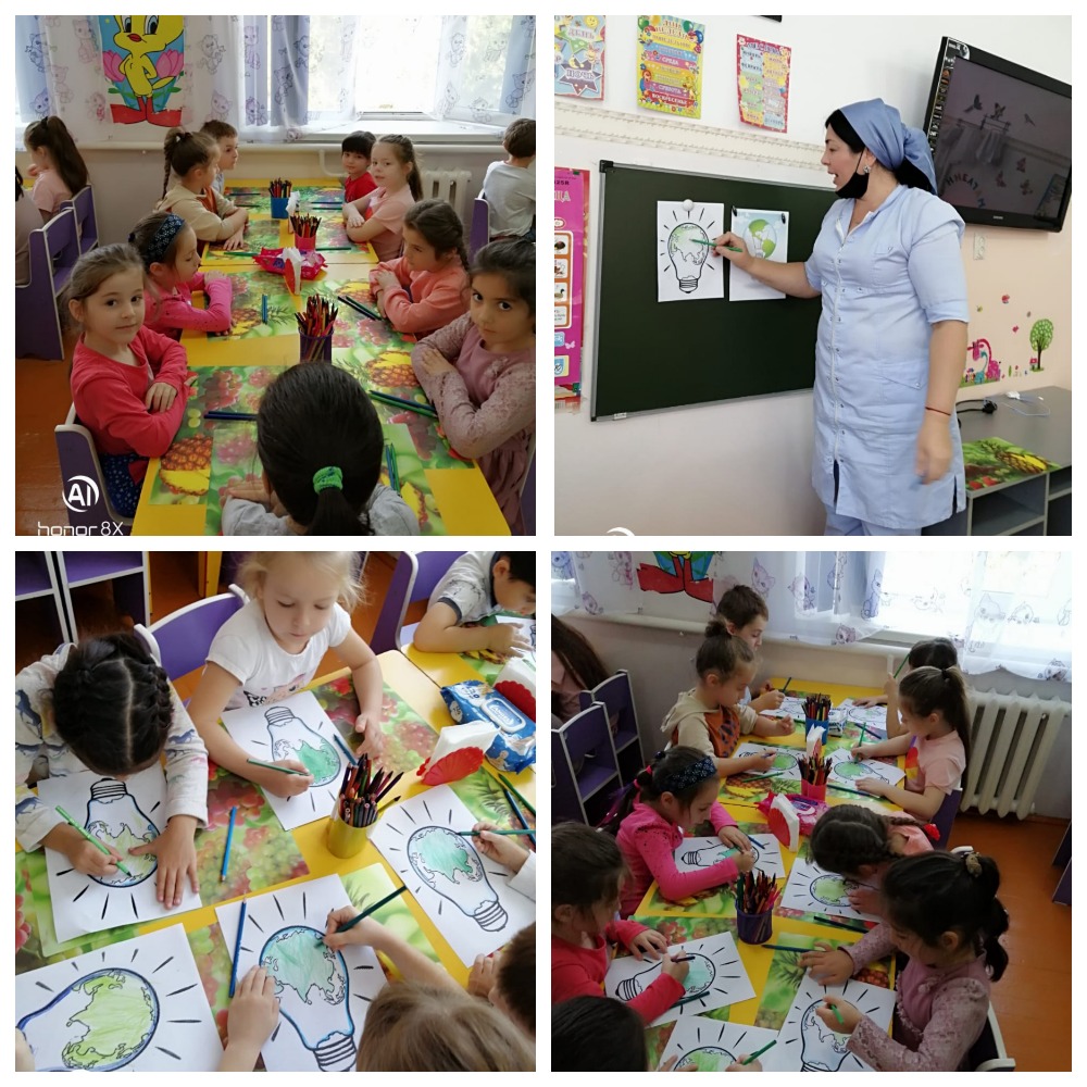 Воспитатель Бачаева Зина А. провела в старшей группе "Ромашка" занятие, направленное на обучение детей энергосбережению.