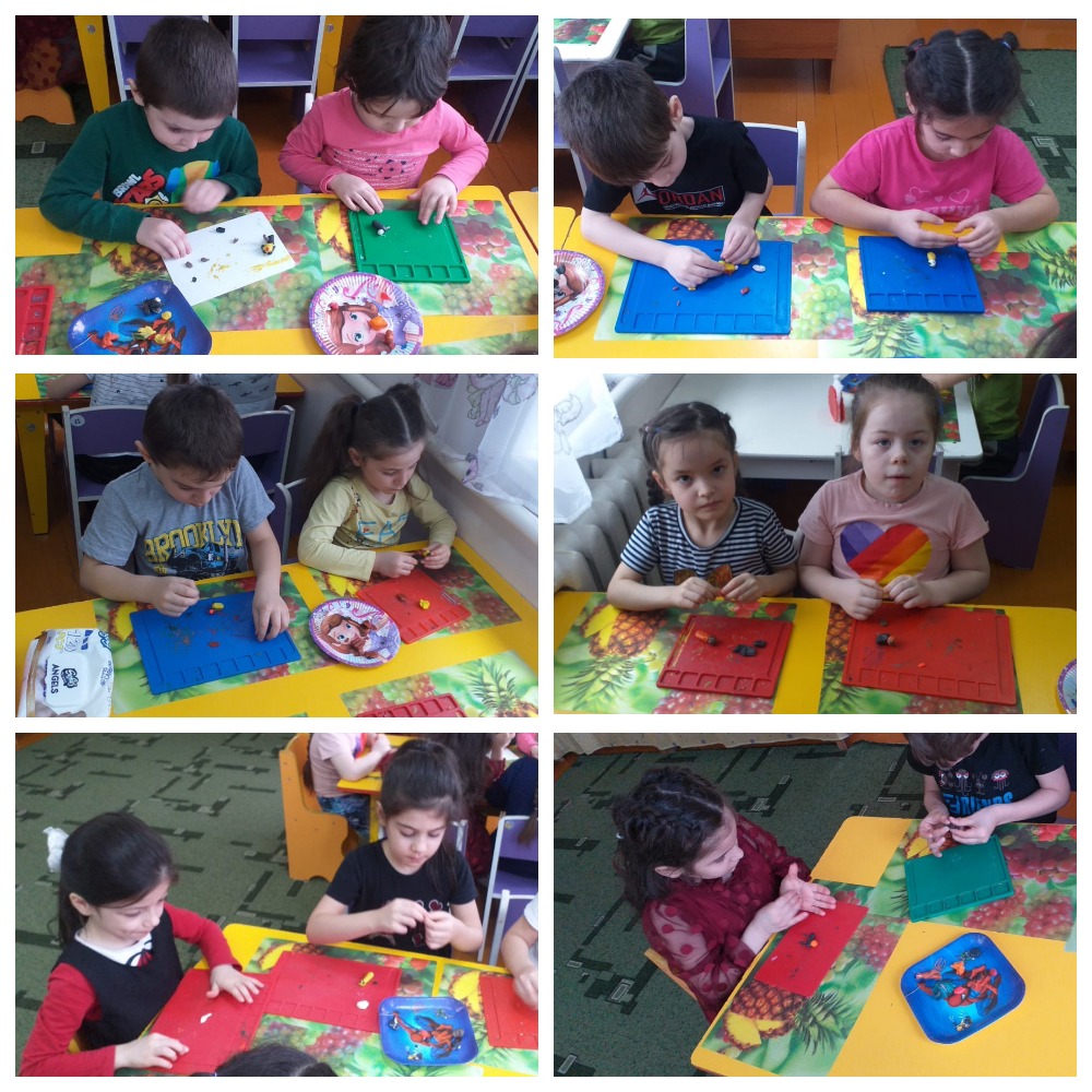 Ребята из старшей группы "Ромашка" на занятии по лепке "Щенок". Воспитатель Бачаева Зина А.