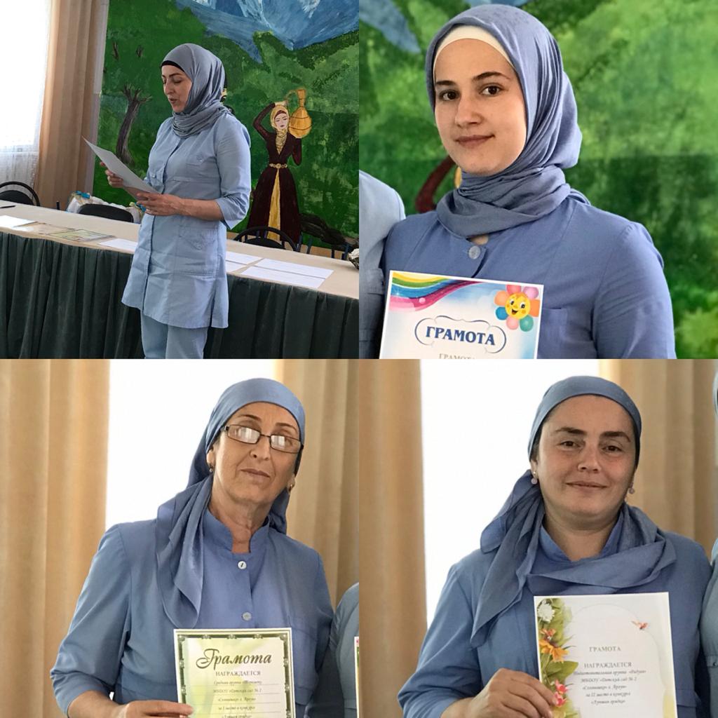 Средние группы:1 место - "Теремок", воспитатели Чимикова Таиса Д., Умарова Камета Ш.;2 место - "Машенька", воспитатели Шахидова Марина Р., Юнусова Муиминат В.