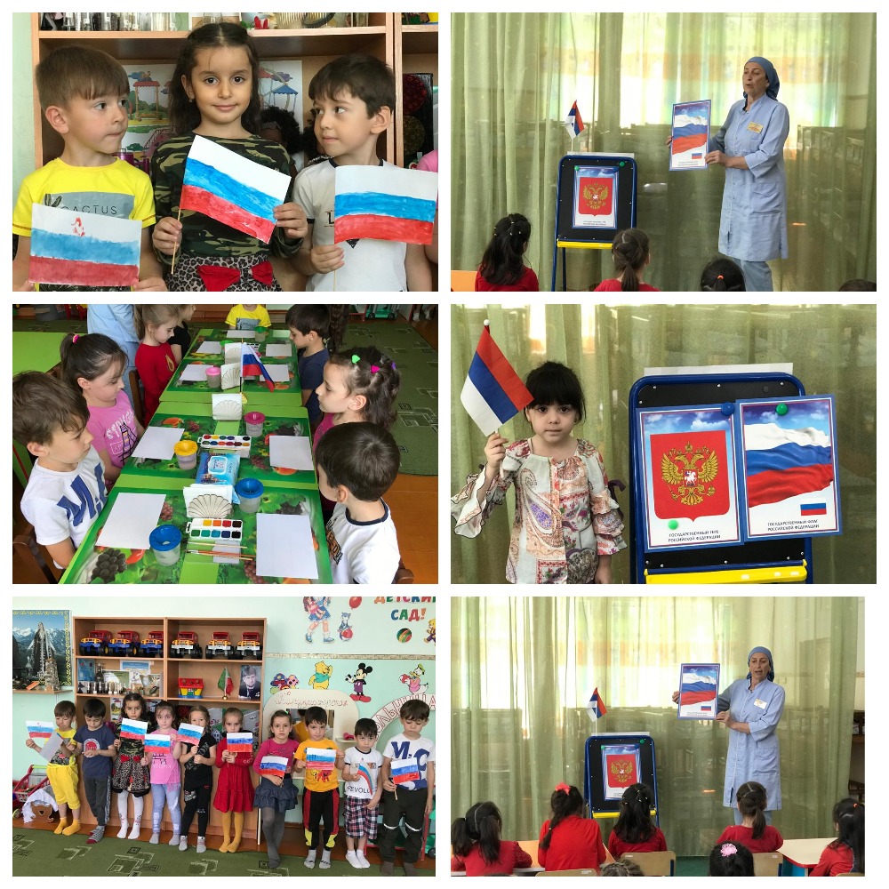 11.06.2021В ожидании Дня России в средней группе "Теремок" воспитатель Чимикова Таиса Д. провела с ребятами беседу о важности праздника. А в средней группе "Машенька" дети под руководством воспитателя Шахидовой Марины Р. научились рисовать флаг России.
