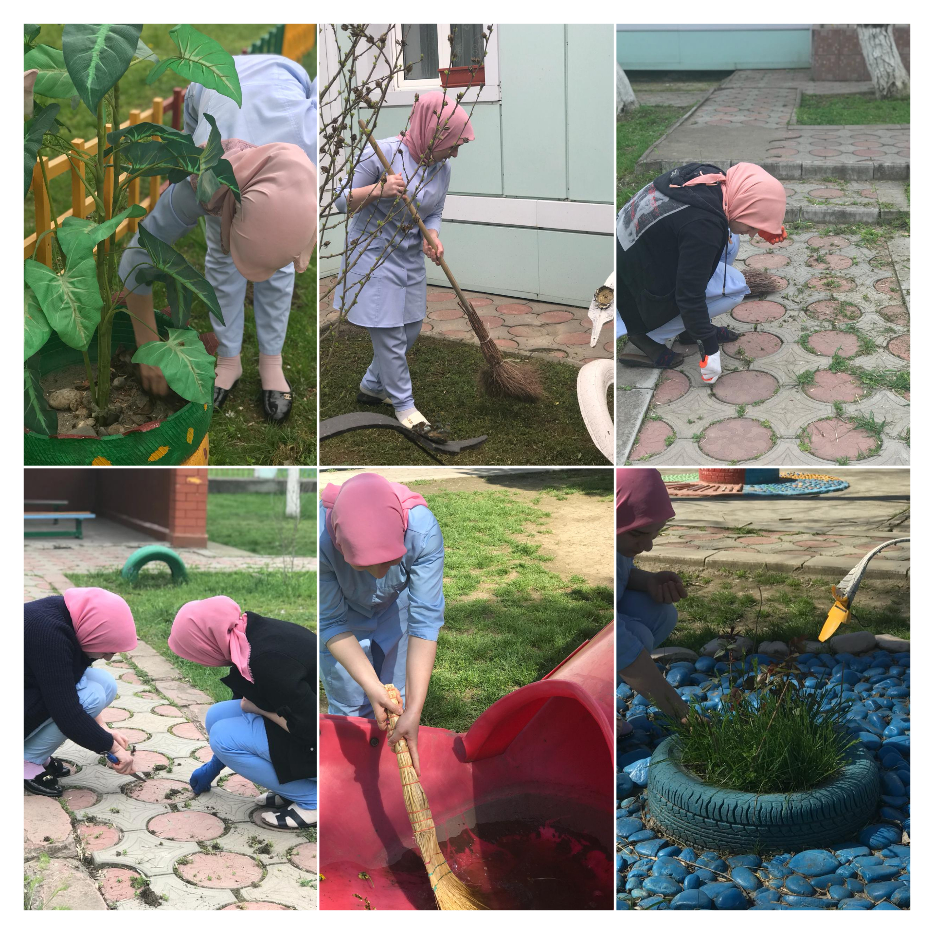 После продолжительного перерыва из-за дождей в детском саду "Солнышко" возобновилось проведение уборок детских площадок и прилегающих к ДОУ территорий.